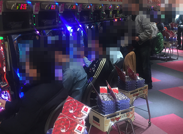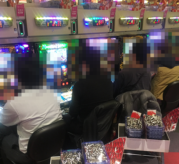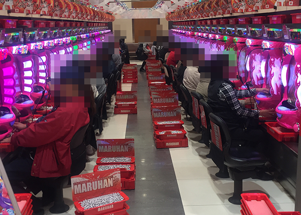 2円パチンコと1円パチンコでも、多数のプレイヤーが笑みを浮かべて遊技を楽しんでいた。