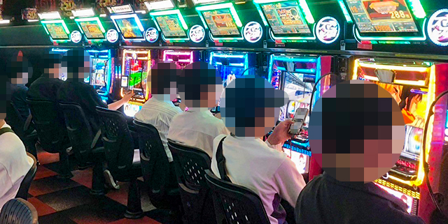 取材当日は多くのプレイヤーであふれており、パチンコ・パチスロどちらも大盛り上がりとなっていた。