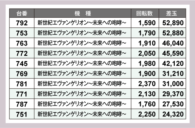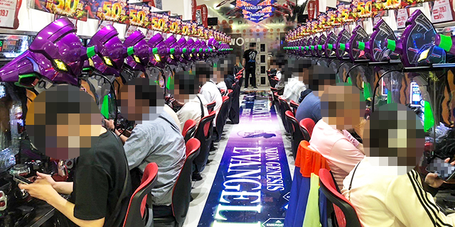 そのほかにもパチンココーナーでは、『新世紀エヴァンゲリオン〜未来への咆哮〜』から+50,000発・+40,000発の優秀台が多数誕生しており、実に華やかな光景が広がっていた。