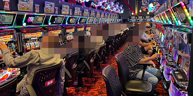 この日の店内は朝から大盛況。特に活気にあふれていたのはパチスロコーナーで、どの機種にも納得の表情のプレイヤーが座っていた。