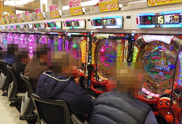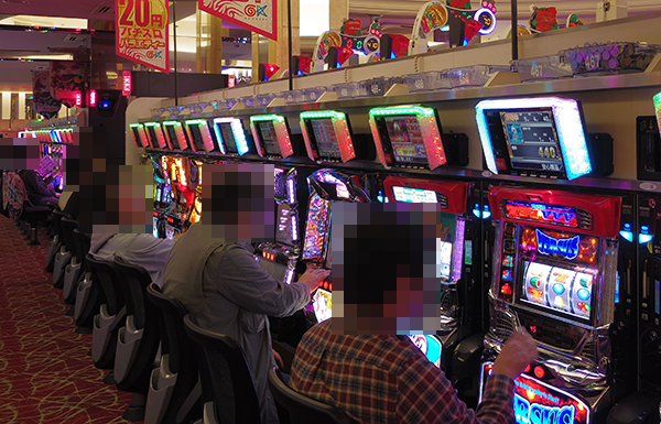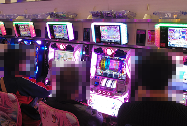 「沖ドキ!」や「バジリスク~甲賀忍法帖~絆」の稼働率も高く、にぎやかな雰囲気。
