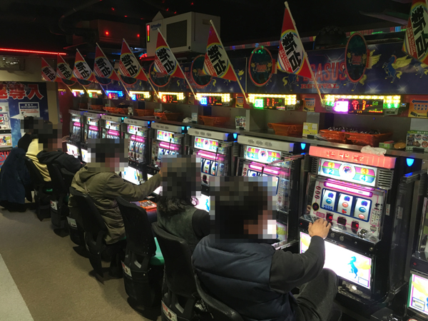 そしてバジリスクシリーズも盛況。「バジリスク~甲賀忍法帖~絆」と「SLOTバジリスク〜甲賀忍法帖〜Ⅲ」でプレイヤーが華麗なパフォーマンスを披露。多くのプレイヤーが遊技を楽しむ姿があった。各シマに広がる雰囲気も明るく、全体的ににぎわっていた。
