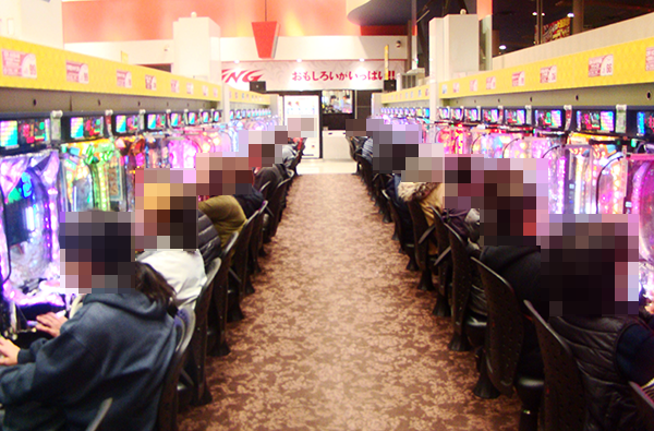 パチンコの低貸し玉コーナーにも、たくさんのプレイヤーが集まっていた。
