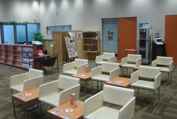 漫画本が用意されているレストスペースや併設されている食事処など、遊技以外における設備面も充実している「ウイング岩出店」。
