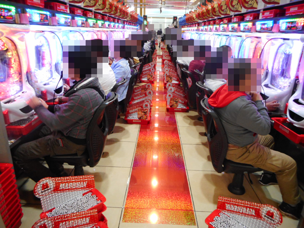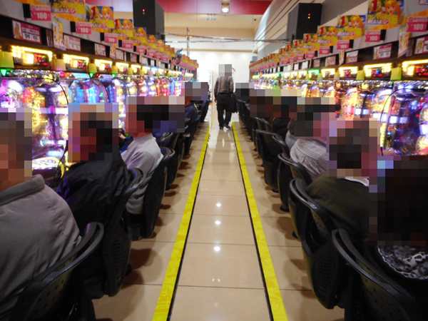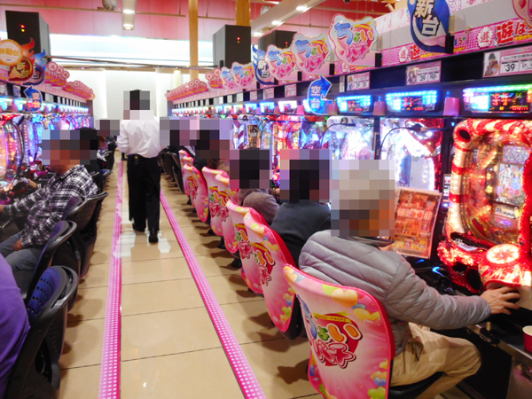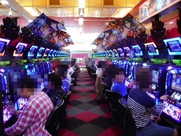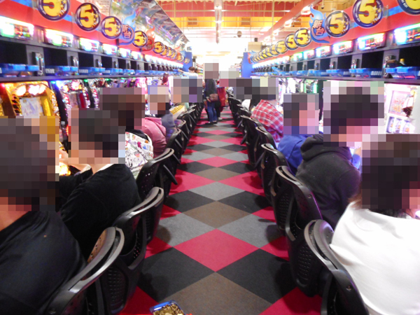 1円パチンコでは、年齢層を問わず多くのプレイヤーでにぎわっていた。その中でも特に海物語シリーズの人気が高い様子だった。
