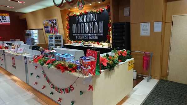 店内装飾はクリスマス仕様になっていて、華やかな雰囲気が感じられた。また、遊技台周りからトイレまで清掃がこまめになされ、常に清潔に保たれていた。