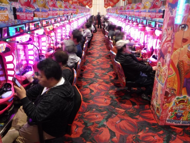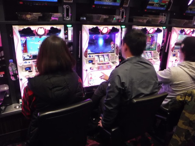 「CRスーパー海物語IN沖縄4マリンシェルビビッドピンクバージョン」は海物語シリーズの中でも抜群の人気を誇り、常に満席となる稼働をみせていた。明るく照らし出されたシマでは笑顔のプレイヤーが多く見られた。