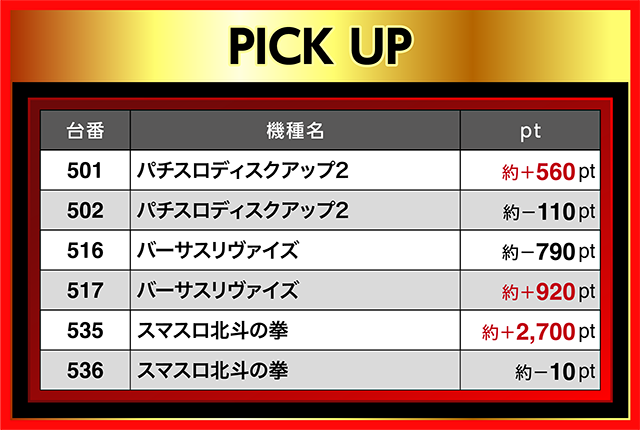 『パチスロディスクアップ2』の501番台と『バーサスリヴァイズ』の517番台もプラス。