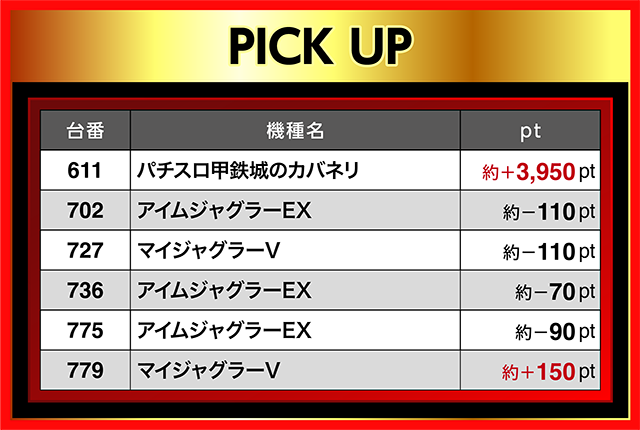 ほかにも、『アイムジャグラーEX』の702番台や736番台などをピックアップした。