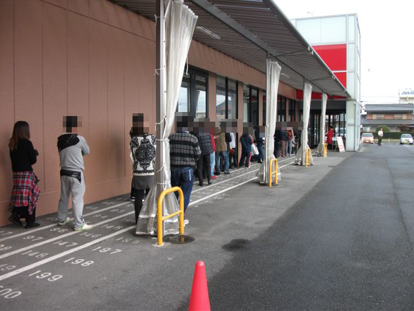開店前に集まったプレイヤーは50名前後。朝イチの傾向としては開店直前に来店するプレイヤーよりも、少し早めに並び始めるプレイヤーが多いようだ。