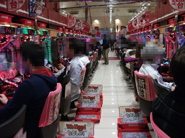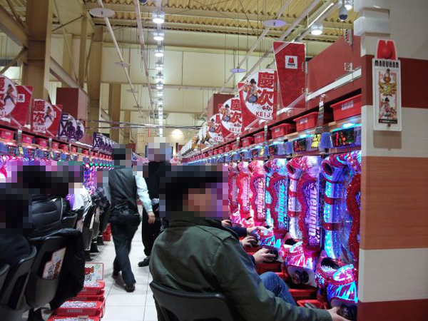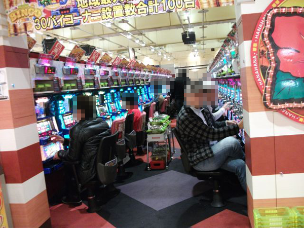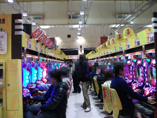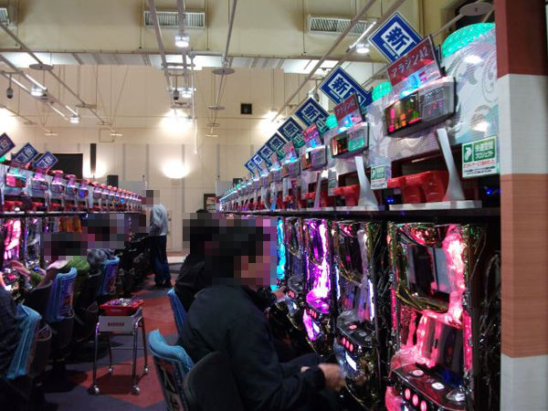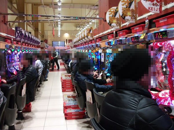 ホール内の様子を見てみると、夕方になる頃にはパチンコとパチスロコーナー共通で多くのシマが満席に近い状態となっていた。