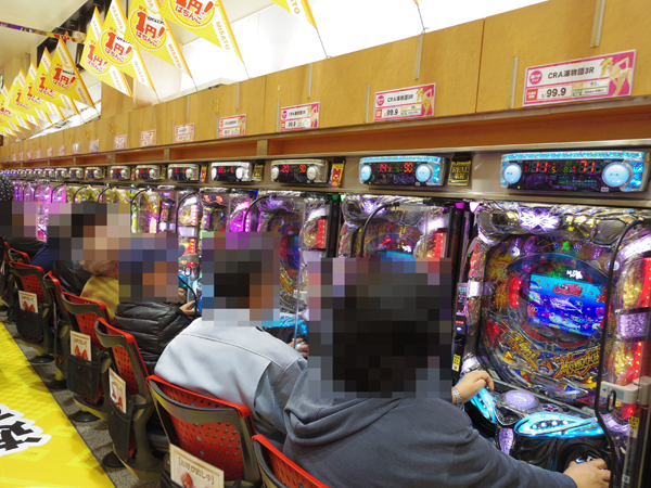 4円パチンコでは「CR花の慶次X~雲のかなたに~」「CRルパン三世~Lupin The End~」が設置されていたシマが大盛況。両機種ともに幅広い年齢層からの支持を集め、空台がほとんど見当たらない状況だった。
