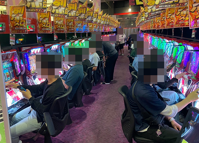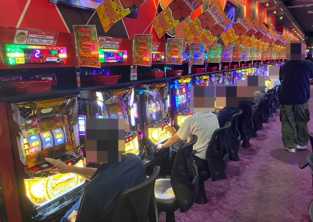 ボーナスタイプと沖スロも人気となっており、ひとめでは空き台をみつけられないほどに盛況。