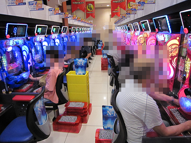 「沖ドキ!GOLD-30」に4箱以上、「キングハナハナ-30」には2箱以上持ち玉を使って遊技をおこなうプレイヤーがいた。