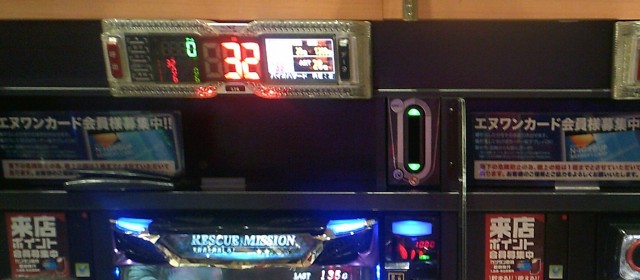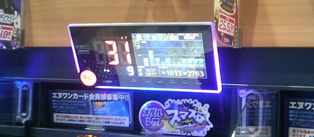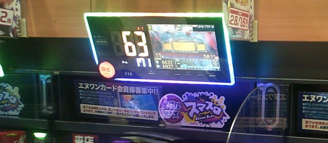 最初は20スロのシマに足を踏み入れた。台上カウンターに華々しい表示が並んでいたのがスマスロコーナーだ。
