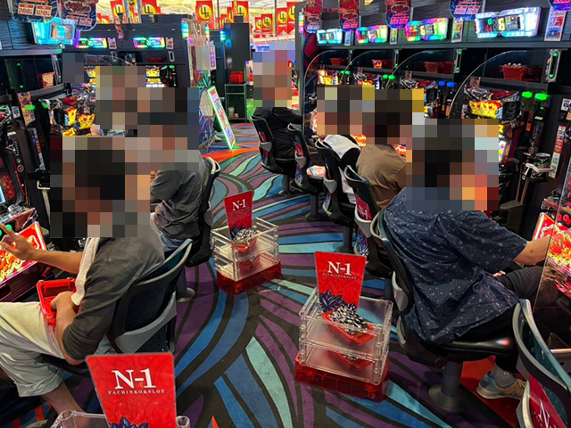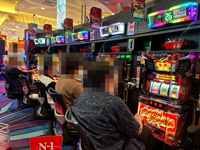 15時頃は約8割の台が埋まっており、たくさんのプレイヤーが楽しそうに遊技をおこなっていた。