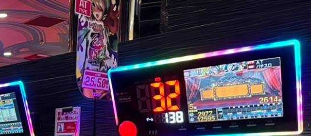 『スマスロモンキーターンⅤ』『Lパチスロ炎炎ノ消防隊』『L戦国乙女4 戦乱に閃く炯眼の軍師』『スマスロ ゴールデンカムイ』と頭上には華々しい表示が続き、また『スマスロ北斗の拳』ではボーナス80回超の台も目撃された。