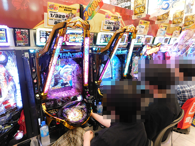「PLT OVERLORD魔導王光臨」にも空き台はなく、プレイヤーは持ち玉を使って遊技中。