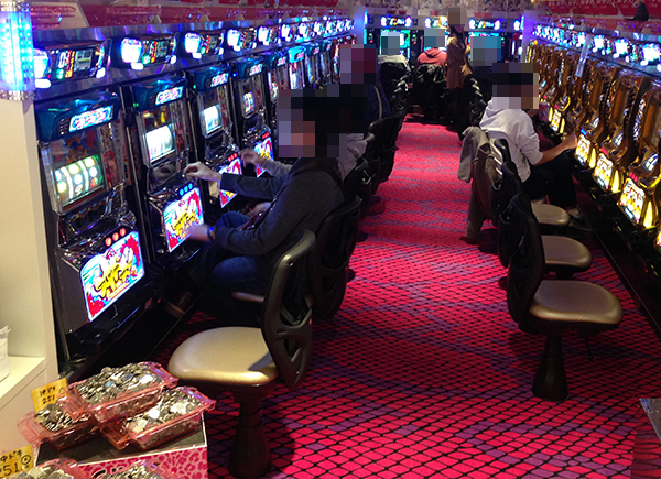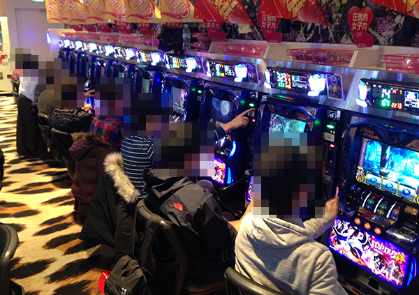 夕方頃のホール内において、もっとも盛り上がっていたのは「バジリスク~甲賀忍法帖~絆」。満席となっているだけでなく、機種の性能を最大限まで引き出しているようなプレイヤーが多かったことも印象的であった。