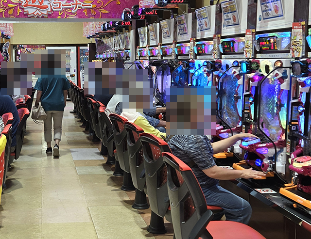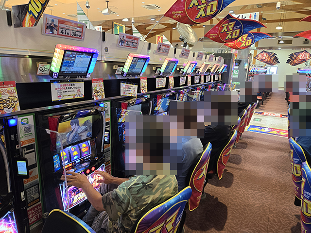 新台から長く愛されているシリーズ機まで設置されているホールであり、取材時は幅広く楽しまれていた。