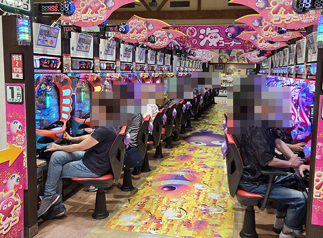 持ち玉を使い、楽しそうに遊技をおこなっていた。