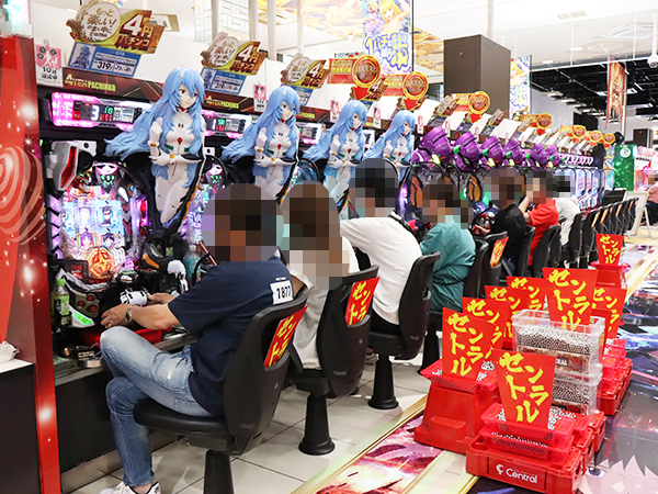 15時ごろの4円パチンコをチェックすると「ぱちんこ シン・エヴァンゲリオン Type レイ」や「P大海物語5 ブラック」が活況の様子。機種性能を最大限に引き出すプレイヤーを目撃している。