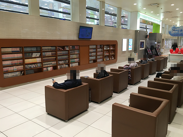 また、レストスペースに注目をすると、広々としていることにくわえ、マンガ本も豊富に取り揃えられており、じっくりと休憩がとれる環境が整っている。