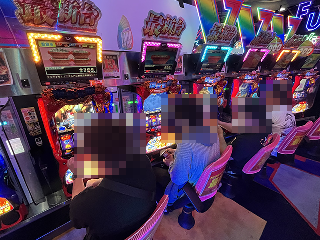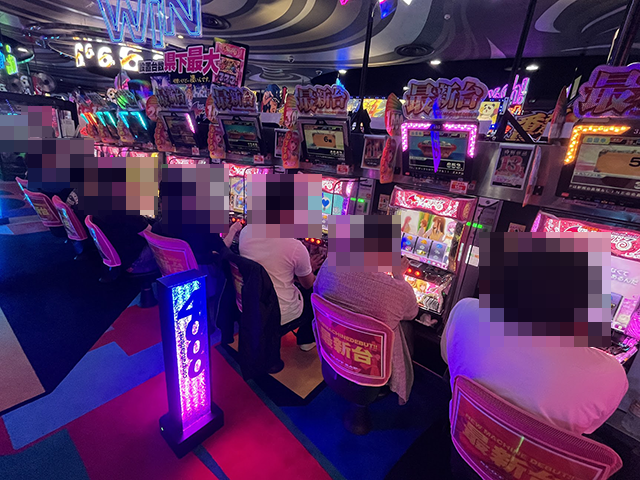 低貸し玉コーナーでも、多くのプレイヤーが楽しそうに遊技中。