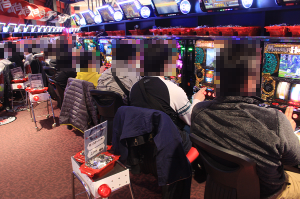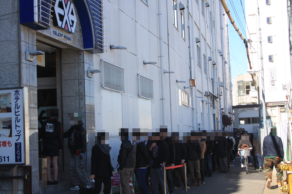 これまでの取材時と同様に朝イチから賑わいは大きく、9時30分から開始された入場抽選に参加したプレイヤーは100名以上。ホールスタッフの迅速かつ丁寧な対応も印象的で、裏口通路を埋め尽くすような長蛇の列ができていたにも関わらず、スムーズに開店が迎えられていた。