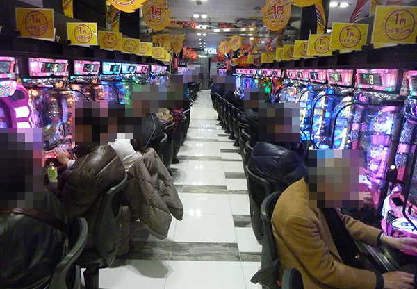 15時半をまわった頃のパチスロでは、「バジリスク~甲賀忍法帖~絆」をはじめ、「ミリオンゴッド-神々の凱旋-」や「沖ドキ!」が盛況。