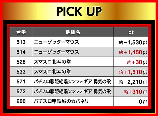 『ニューゲッターマウス』では、514番台が約+1,500ptクラス。