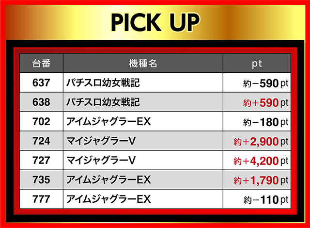 『アイムジャグラーEX』の735番台も約+1,700ptを超えた。