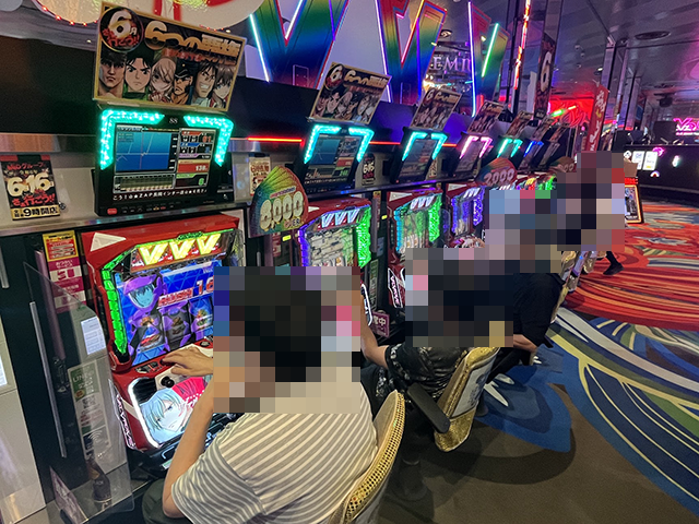 うれしそうに遊技をおこなう姿が並び、8,000pt以上を記録している台を確認した。