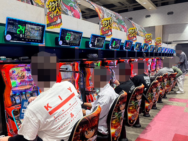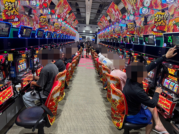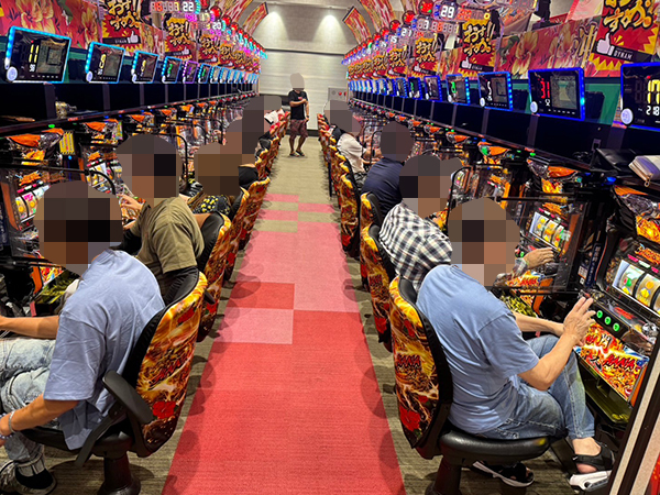取材時は既に多くのプレイヤーであふれており、パチンコ・パチスロを問わず楽しげなムードで満ちていた。