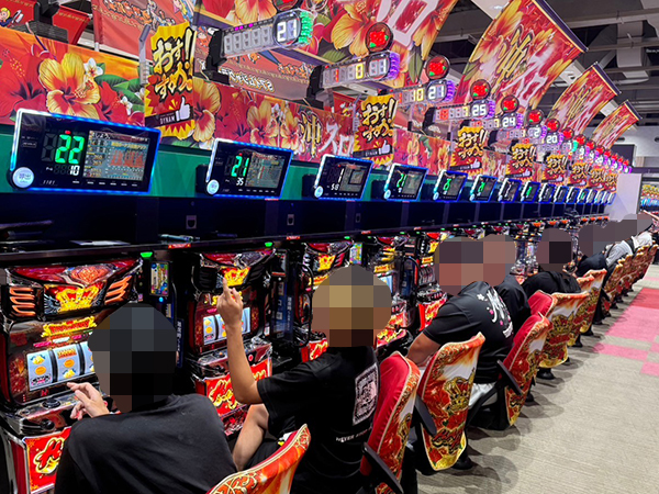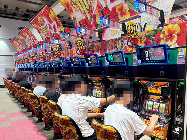 5.435円パチスロの支持も厚く、様々な機種で楽しそうにレバーを叩くプレイヤーが見られた。