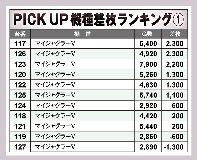 続いて機種別に見てみると、『マイジャグラーV』や先ほども紹介した『ジャグラーガールズSS』と言った機種が活躍しており、スマスロだけでなく様々な機種が活躍できる環境にあったことが伺える。