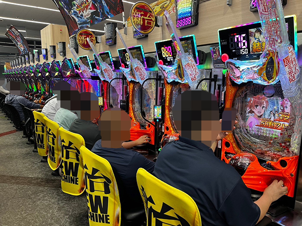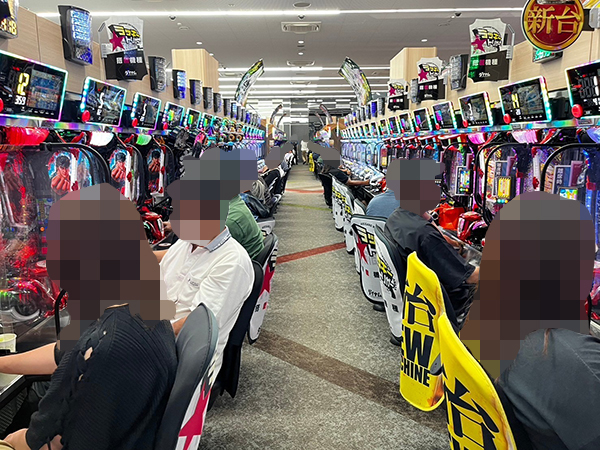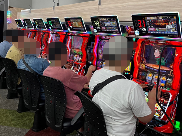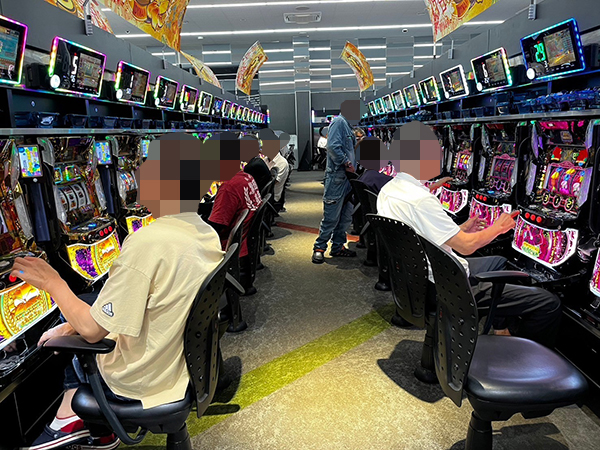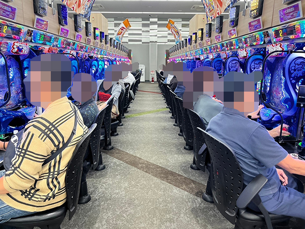 取材時は既に多くのプレイヤーが集結し、パチンコ・パチスロを問わずにぎやかな状況となっていた。
