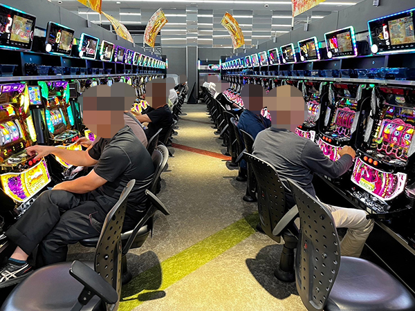 店内には老若男女を問わずプレイヤーが集合。パチンコ・パチスロの各シマから活気が感じられた。