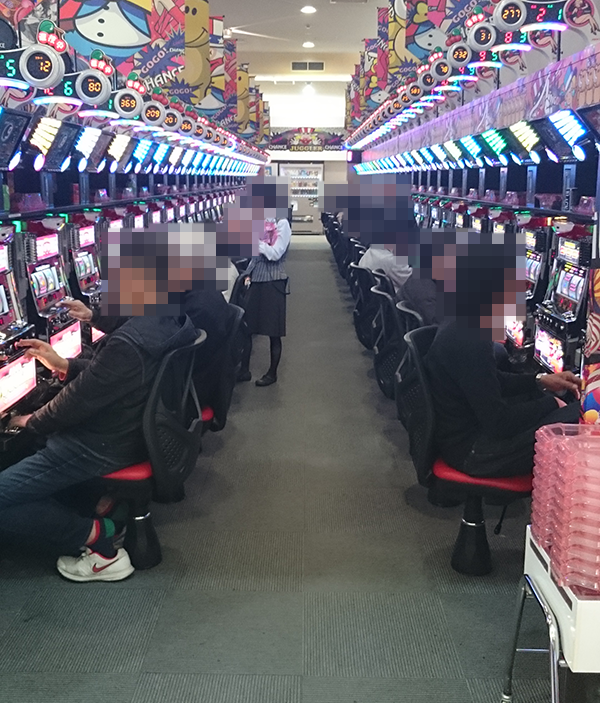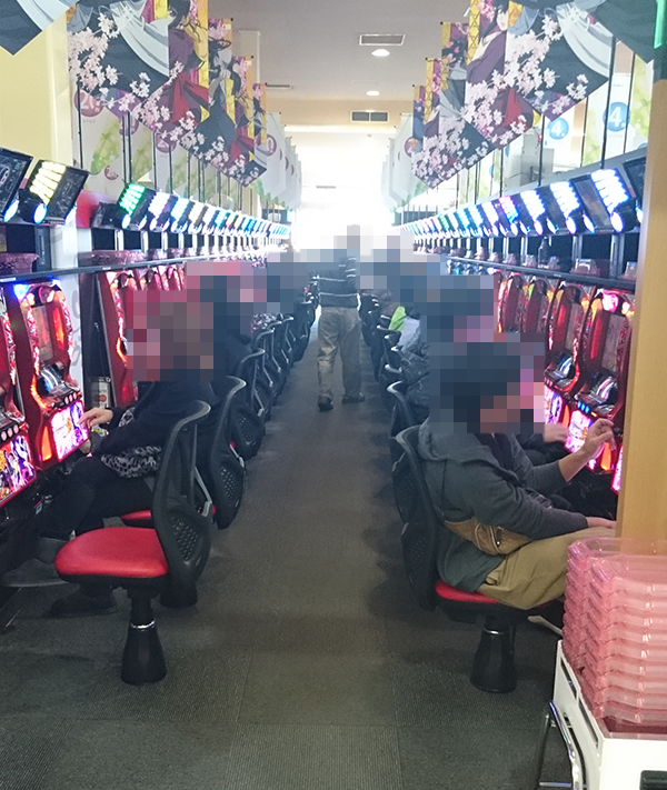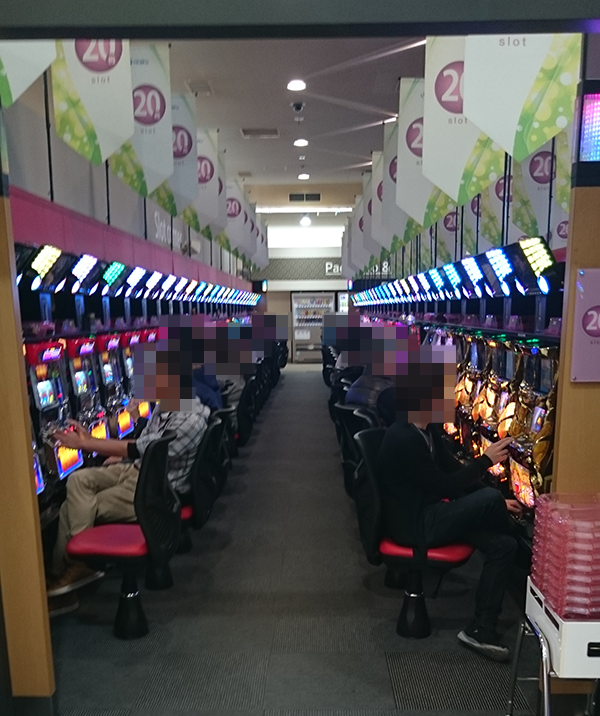 14時頃の20円パチスロでは、「バジリスク~甲賀忍法帖~絆」や「SLOTバジリスク〜甲賀忍法帖〜Ⅲ」が大盛況。機種の性能を最大限に引き出しているようなプレイヤーがみられ、満足度も高そうであった。