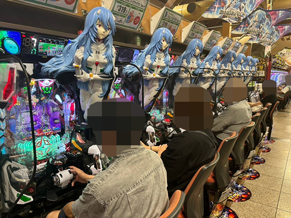 16時ごろの4円パチンコを見てみると「e花の慶次〜傾奇一転」や「ぱちんこ シン・エヴァンゲリオン Type レイ」が大盛り上がり。魅力的なシーンをシマのあちこちで目にしている。
