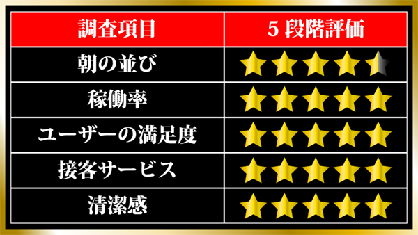 5円パチスロでは、「パチスロモンスターハンター月下雷鳴」や「SLOT魔法少女まどか☆マギカ2」が朝から人気を集めており、ほぼ満台の状態が続いていた。