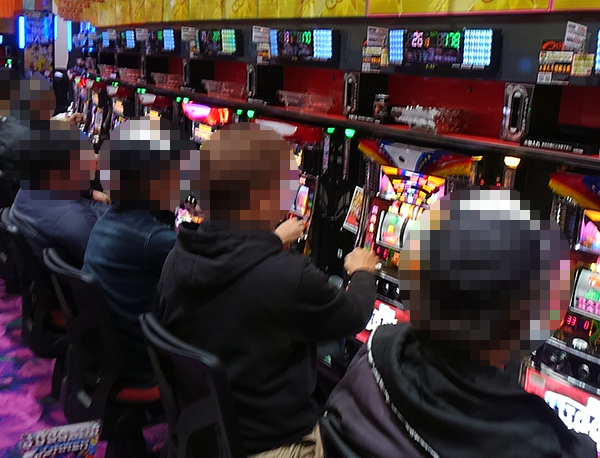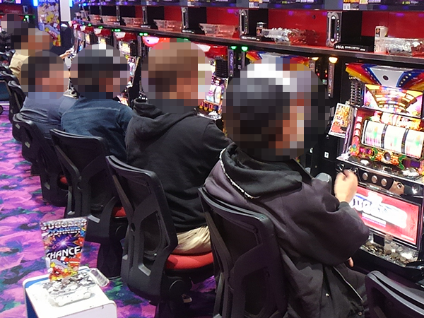取材日となった12月17日は、大勢のプレイヤーが来店しており、パチンコ・パチスロともに楽しそうな光景が広がっていた。