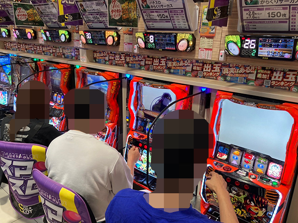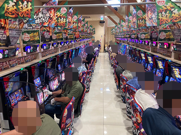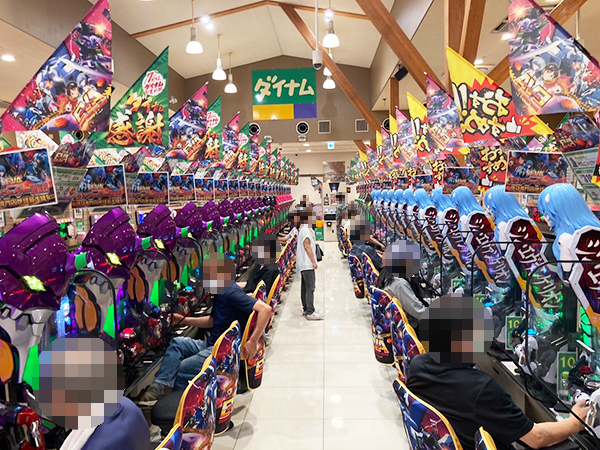 取材時は多くのプレイヤーが来店。パチンコ・パチスロともに、様々な機種が支持を得ていた。