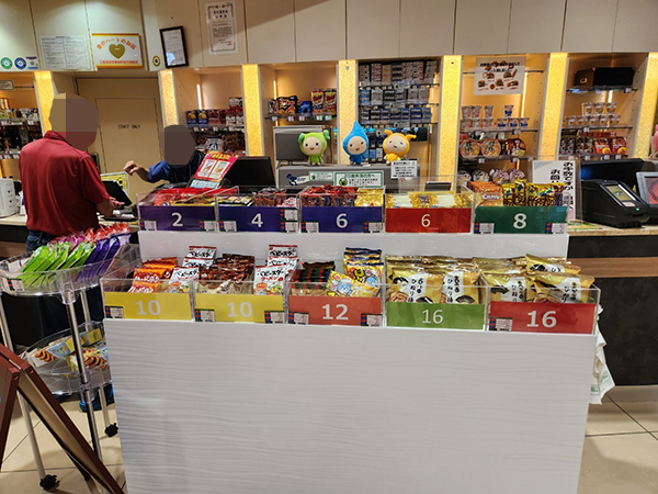 景品コーナーにはたくさんのお菓子やインスタント食品が用意されており、プレイヤーから好評だった。