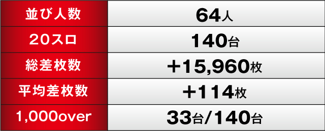 総差枚数+15,960枚、+1,000枚オーバー33/140台という結果で終了した今回の「VEPPAN」。初実施を見事勝利で飾り、今後の活躍も期待できる同店。とくにジャグラーシリーズなどの人気機種が並びで盛り上がる傾向が確認できたので、次回以降実施の際はしっかりチェックしておこう。引き続き同店の情報をチェックして、次回の実施のために備えておこう!