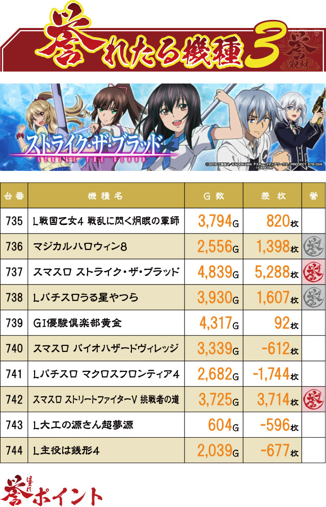 取材班はバラエティーコーナーにも注目。すると10台並んだこちらのブロックが怪しい動きを…。誉マークの多さから判断するに、優秀台が多く潜んでいた…!?