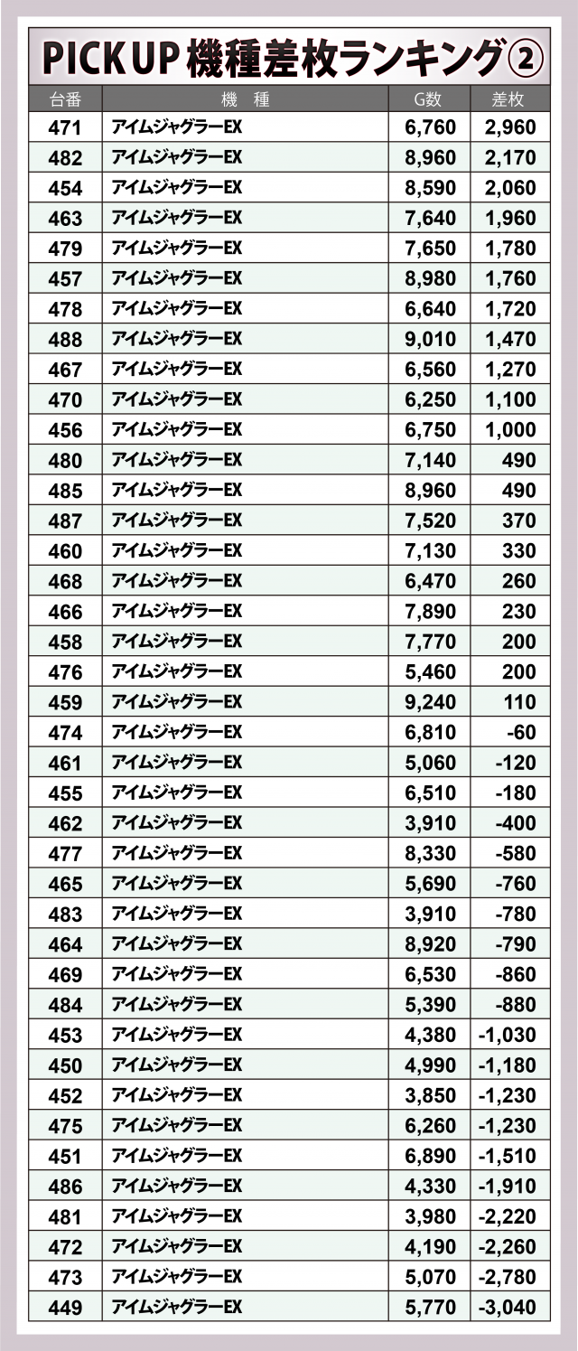 また『アイムジャグラーEX』が安定度の高さを見せたのも印象深い。