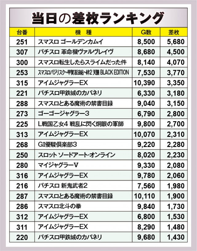 ※記事内の差枚表記はぱちタウン独自調査に基づくものです。ご了承ください。