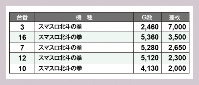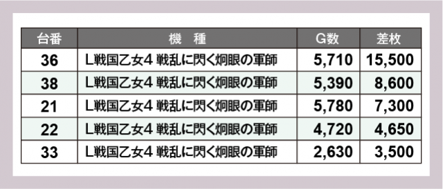 ※差枚数順に掲載しています