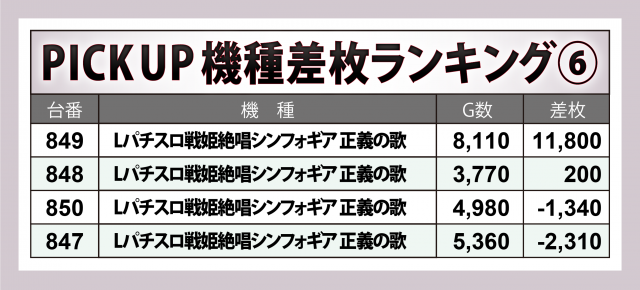 ここで取り上げた機種の中で差枚数順で記していくと、まず『スマスロ真・北斗無双』『Lパチスロ戦姫絶唱シンフォギア 正義の歌』の2つが万枚超えを達成。